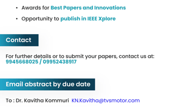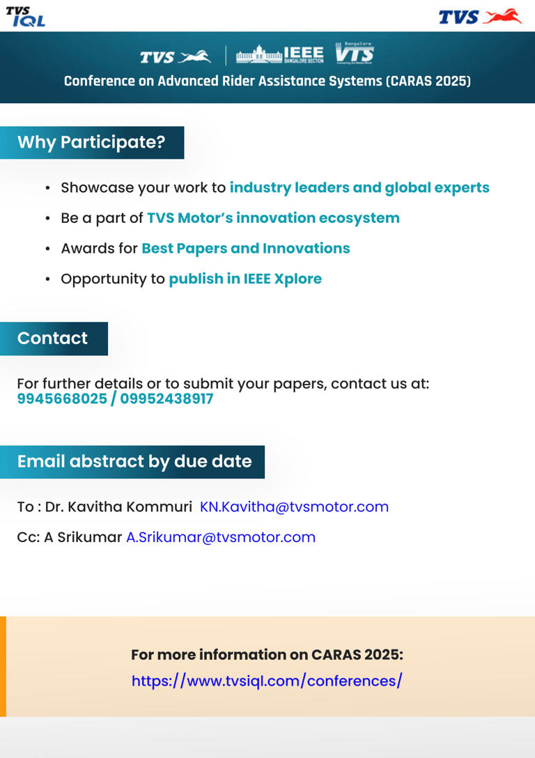 International Conference on Vehicular Technology and Transportation System (ICVTTS) 2024, Bangalore (27&28 Sep 2024)